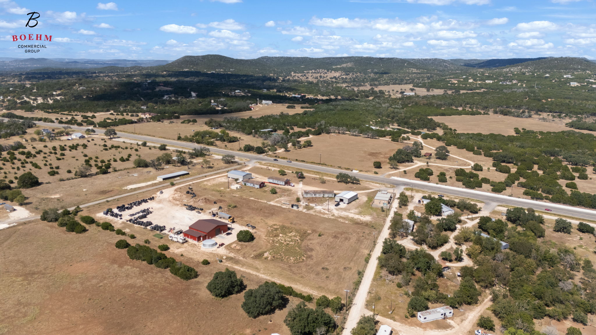 The facility features a well-designed warehouse and office with three 14’ x 16’ insulated overhead doors, 2-inch closed-cell spray foam insulation, and a reinforced 5,000 PSI concrete foundation. A comprehensive LED lighting system runs throughout the facility, while the finished-out drywall office and living space includes a full wet bath for on-site convenience. Supporting infrastructure includes a 30,000-gallon water catchment tank, conventional septic system, and a dedicated ±1-acre laydown yard ideal for equipment storage and material management. Altogether, 9106 Highway 16 delivers a durable, high-performing property that’s ready for immediate industrial or operational use in a prime Hill Country location.
