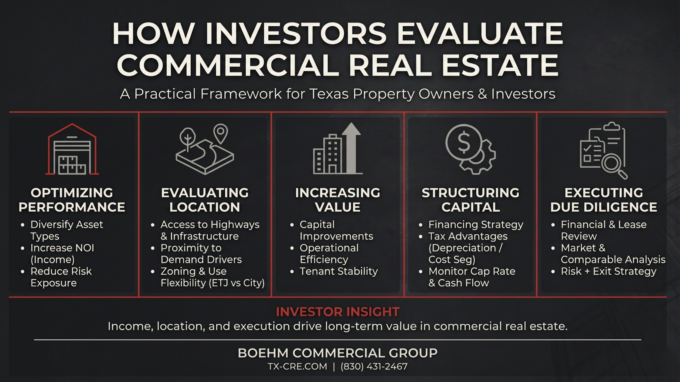 At Boehm Commercial Group, we help clients evaluate opportunities and navigate commercial real estate decisions.